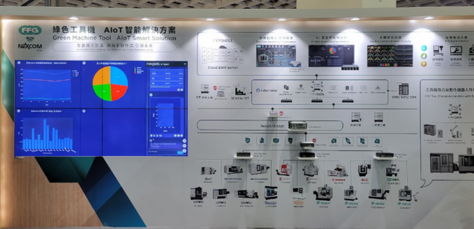 TIMTOS最大ブースとなる友嘉実業集団(FFG: Fair Friend Group)では、大手産業用PCメーカーのNEXCOMグループと提携し、「グリーン工作機械(緑色工具機)」「AIoTスマートソリューション(智能解決方案)」と題して、環境にやさしい工作機械向けのAIとIoTを駆使したスマートソリューションを共同開発すると発表していた。